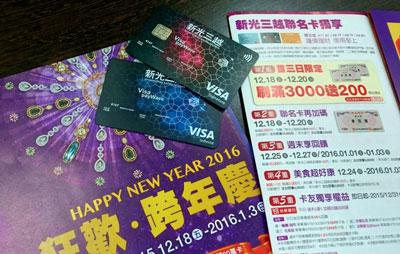 各家百貨陸續推出年度最後一波優惠搶攻跨年商機,百貨龍頭新光三越12月18日起至明年1月3日止舉辦跨年慶活動,除了刷台新新光三越聯名卡首3日消費滿3,000元送200元贈品禮券(每卡限兌換1次)外,還有刷卡消費滿5,000元送100元商品禮券的滿額禮優惠,此外,台新銀行還加碼推出首3日刷卡消費滿5,000元送100元商品禮券,回饋率可高達8%。