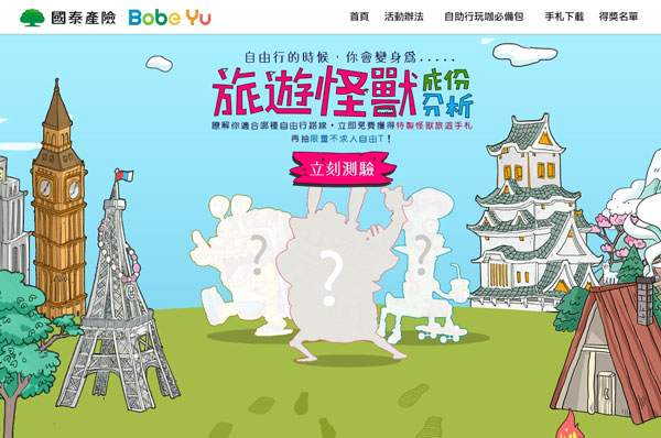 為了鼓勵民眾多多使用網路投保,國泰產險更於7月份舉辦「遊戲送手帳,投保抽潮T」活動,7月8日起,只要至國泰產險BOBE網路投保網站,進行有趣心理測驗,便可免費獲得符合心理測驗個性的電子手帳,喜愛紀錄旅遊種種的民眾,可自行列印,手作手帳,為旅行留下種種回憶。