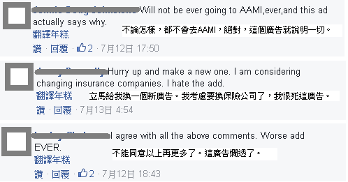 AAMI靠著敏感的警覺性,立即做出反映止血,暫時度過危機,值得給予掌聲,但長久經營的形象仍不免受到影響,這事件也讓保險公司瞭解,拍廣告也得戰戰兢兢,否則恐會帶來反效果。