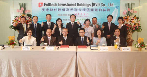 Fulltech Investment Holdings (BVI) Co., Ltd.公司(以下稱「Fulltech(BVI)」),委由臺灣銀行統籌主辦美金4,600萬元聯合授信案,已於105年7月21日假台北威斯汀六福皇宮完成聯貸簽約手續, 燿華集團總裁張平沼先生、富喬工業股份有限公司(以下稱「富喬工業」,股票代號 1815)董事長張元賓先生、臺灣銀行總經理蕭長瑞先生以及參貸銀行高層主管連袂出席簽約儀式。
