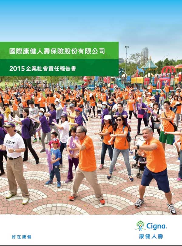 康健人壽「2015年企業社會責任報告書」完整內容公布於企業網站內(https://www.cigna.com.tw/CSR),也可從此下載 https://www.cigna.com.tw/sites/default/files/pdf/CSR_report.pdf