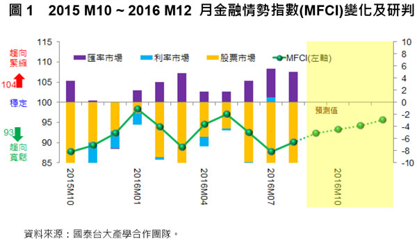 新興市場成長轉趨穩定,然成熟市場力道轉弱,加上「英」影籠罩,IMF再下調2016年和2017年全球經濟成長預測至3.1%和3.4%。台灣第二季GDP季增率轉正,7月景氣燈號再現綠燈,出口也連續2個月正成長,符合我們6月時的預期。因此,本團隊維持2016年的經濟成長率預測值在0.8%,但縮小預測區間為0.75%~1.05%,同時研判年底前整體金融情勢將轉向穩定發展。
