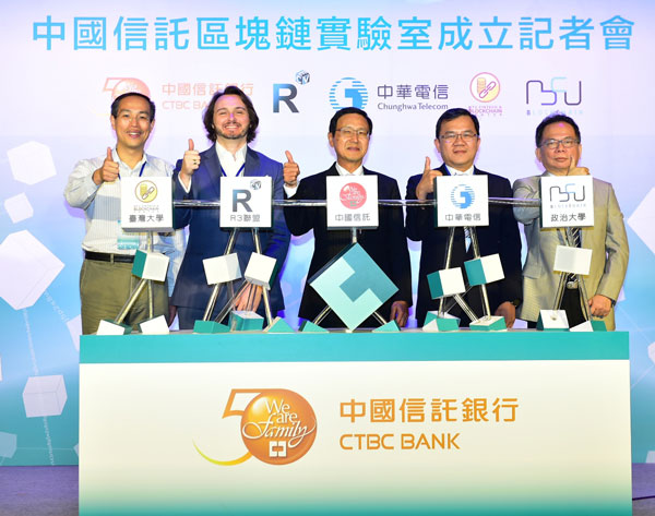中國信託商業銀行(簡稱「中國信託銀行」)本(10)月啟動區塊鏈(Blockchain)發展計畫,正式加入目前國際最大金融區塊鏈R3聯盟,成為臺灣首家R3聯盟會員,26日舉辦記者會宣布成立「中國信託區塊鏈實驗室」,發表實驗室成立願景及未來發展計畫,攜手國內電信龍頭中華電信、臺灣大學、政治大學研究團隊,積極投入區塊鏈技術發展。