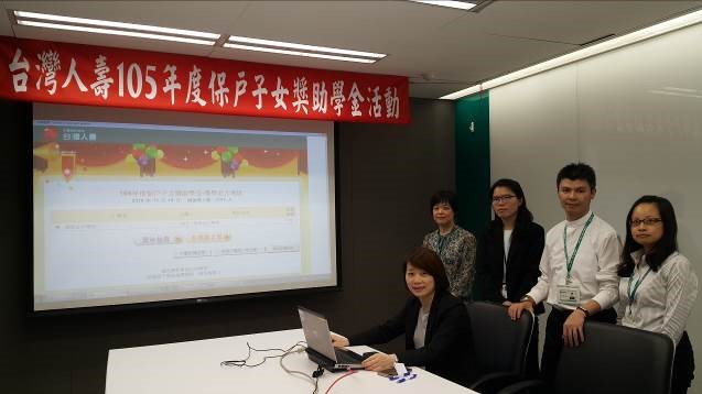 105年度「50樂助學 好學有獎勵」台灣人壽保戶子女獎助學金申請活動,第一階段開放保戶及保戶子女於網路提出申請,申請人數總計4,262名;第二階段於11月18日在會計師與律師的雙重見證下,由台灣人壽行政管理處蘇淑美處長代表,公開抽出中獎者正、備取名單。第三階段則進行中獎者資格審查作業,正取中獎者如經覆核有資格不符,則由備取中獎者依序遞補至該獎項額滿為止。