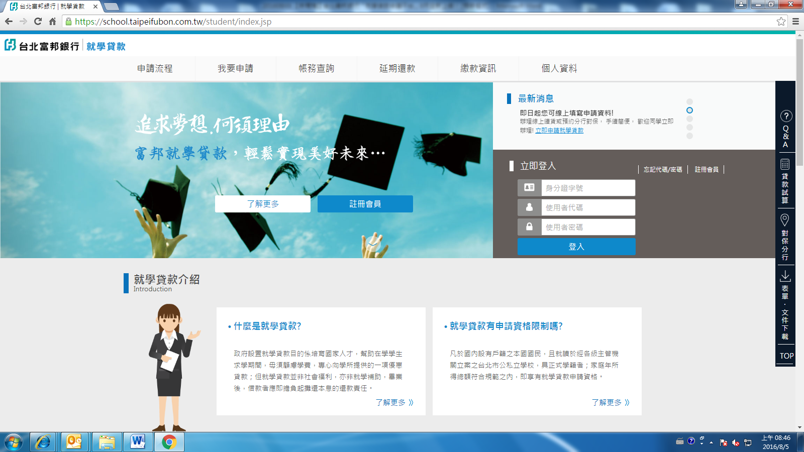 富邦銀行:2月開學季將至 「就學貸款」即日起至2/24開放受理 創新線上服務 輕鬆申辦少負擔