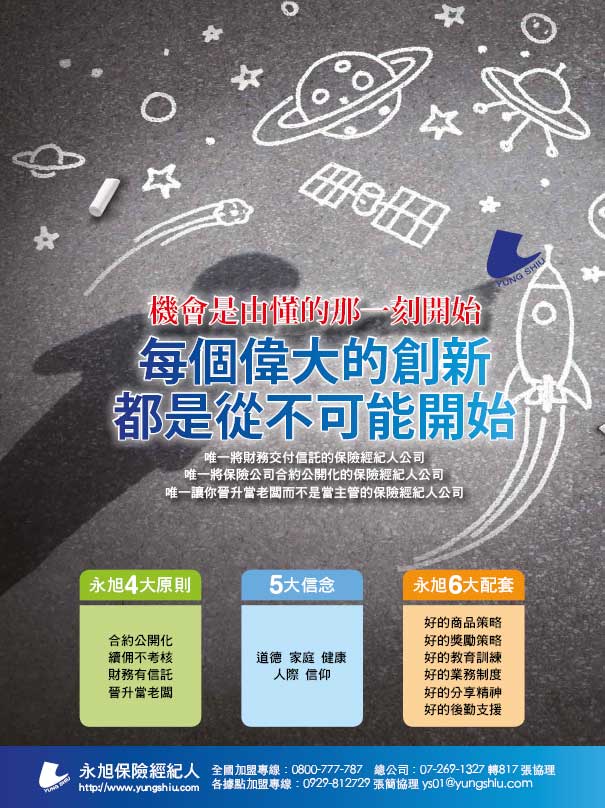 永旭保經:選對平台比努力更重要 用心、專業、分享 建構完整保險服務網