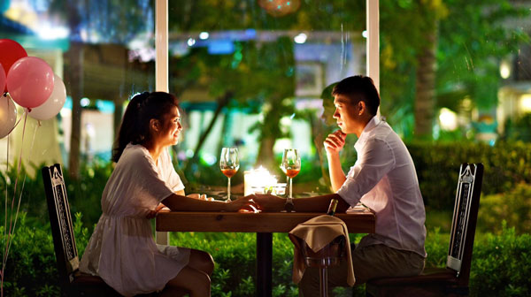 愛你久久套餐開胃前菜「嫩煎鮭魚佐香蘋橄欖果泥油醋汁」、「法式茴香白蘭地龍蝦湯」及「爐烤鴨胸生菜佐紅莓醬」,為情人節套餐拉開序幕,主菜「大蒜燒烤紐西蘭特級菲力牛排佐芥茉牛骨汁」,考驗了主廚烹調功力,烹煮過頭一點就顯得老澀,無法顯出質地軟嫩多汁牛菲力的彈牙;另一道「香草奶油鹽寮小龍蝦」,肉質彈牙的小龍蝦,搭配上香草奶油,令肉質更具層次,更可以吃出龍蝦的鮮甜味!甜點「濃情巧克力天鵝泡芙」,則是讓情侶們感受到彼此滿滿的愛意,作為餐點的結尾。用餐結束後,則可以到應許之河上搭乘愛之船,在夜燈的烘托下,如同置身小威尼斯,享受兩人甜蜜的時光,讓今年的情人節不單單只是吃飯,還可以暢遊在運河上,為情人節畫下最完美的句點。