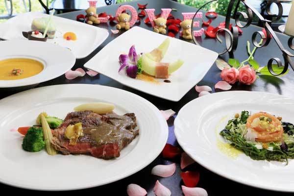 情人節8/26-8/28期間,專屬兩人的甜蜜滋味「心花怒放」套餐,以花為主題設計五道餐點,每人NT$1,314+10%,主餐「沙郎嘿唷零距離」在主廚高得明的巧手下,將美味又經典的沙朗牛排,烹飪出滋滋脆脆之後緊接柔嫩的肉感,搭配馬鈴薯、野薑花等養生食材,品嘗出焦香味和鮮美豐腴的肉汁,如花朵盛開,多層次的口感,去膩又解油。「翡翠野玫瑰」由煙燻鮭魚裝扮定情之花-玫瑰花,恰如看到戀人間的愛情進行式,甜蜜又有趣。理想大地的應許之河,是情侶、新人或家庭來到飯店必到訪的景點,主廚將河道上的風景,縮小成「應許之河船載永恆」,將西式料理的情人套餐昇華為絕美的藝術品,讓今年七夕充滿愛的意義。