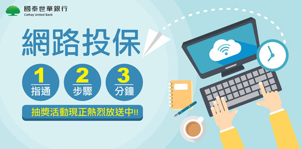 國泰世華客戶透過網路銀行投保,可24小時滿足投保需求,旅遊放心、行車安心,全部1指搞定。活動詳情請上國泰世華銀行官網查詢。