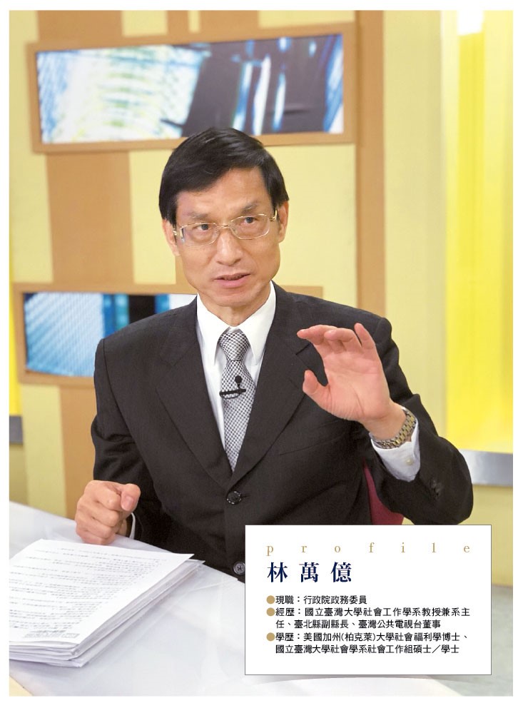 擔任行政院政務委員的林萬億,不僅力推年金改革,弱勢脫困大溫暖計劃、十二年國教、勞保年金化、國民年金……許多政策都有他的足跡。種種社會問題亟待解套,想做的事情太多,在接受《健康保險大家談》電視節目主持人黃秀玲教授專訪時,林萬億開玩笑說「我是不自量力了!」