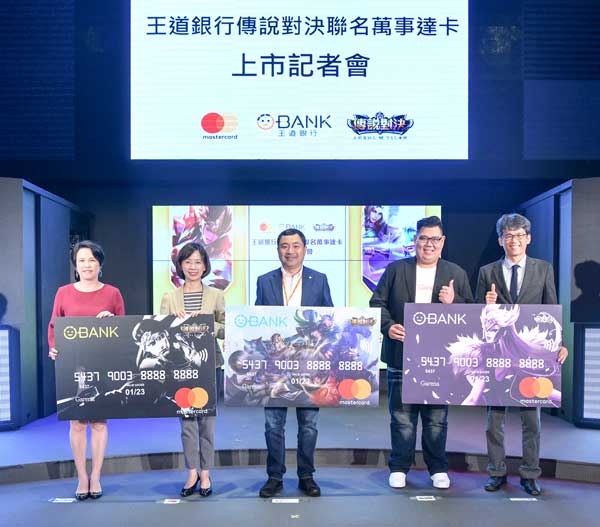 據IDC推估至2021年,數位化產品及相關服務將占比台灣GDP高達55%,遠高於全球的50% 。萬事達卡1/18與王道銀行和《Garena傳說對決》三強跨界聯手推出「王道銀行傳說對決聯名簽帳金融卡」,提供全通路消費1.5%現金回饋無上限;針對傳說對決的龐大玩家,「王道銀行傳說對決聯名簽帳金融卡」更獨家提供熱門限定造型4選1,以及Garena儲值中心儲值消費最高享2.5%現金回饋等優惠。此外,萬事達卡看中金融卡對於未來數位支付佈局之重要性,特別為金融卡持卡人打造KKBOX線上音樂串流優惠,以及五星級飯店下午茶買一送一的精選禮遇,以滿足消費者在數位通路和實體消費的全方位體驗。