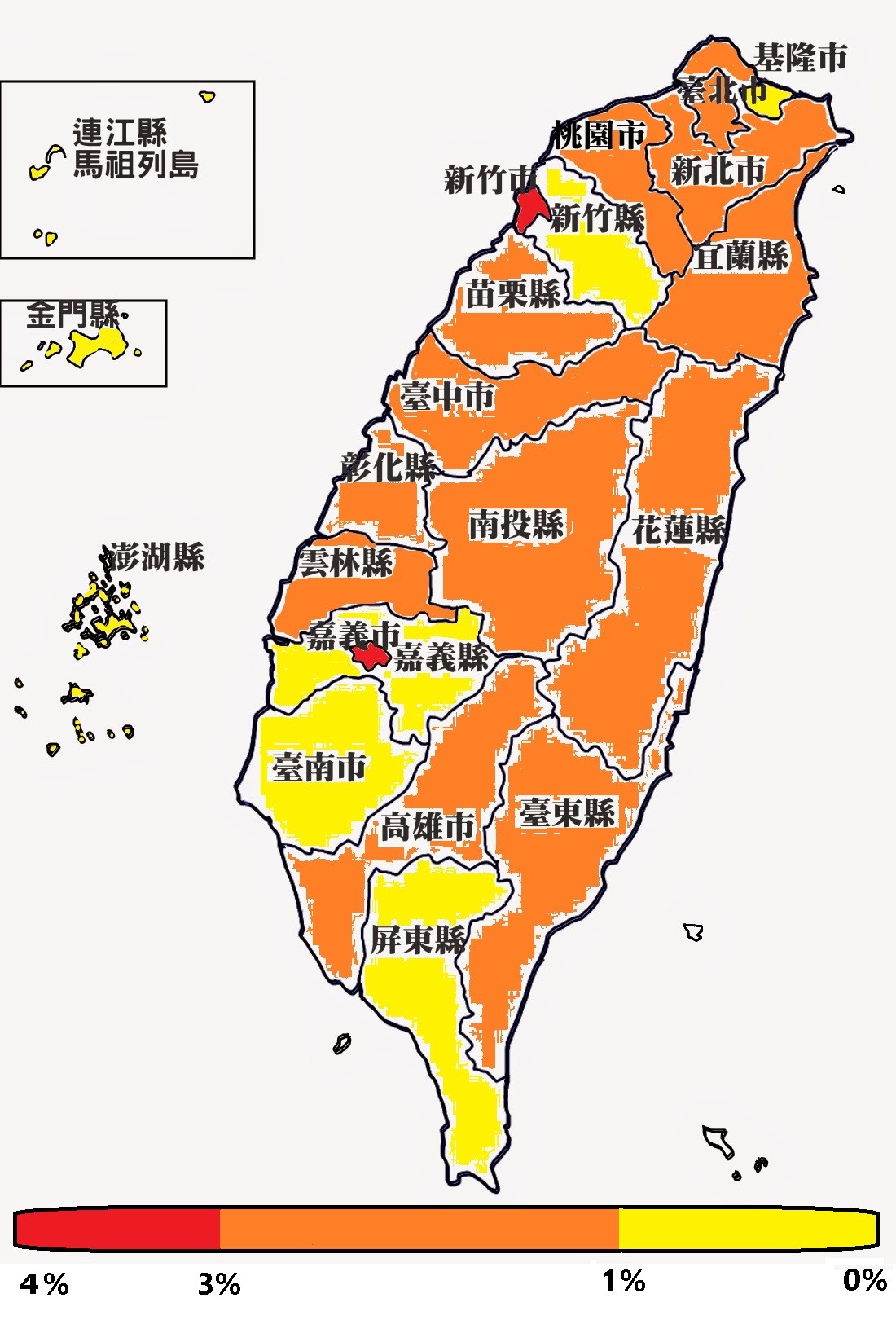 如果台灣也考慮「地區風險等級」,哪一個地區最危險?哪一個地區最安全?