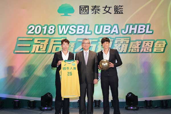 晚宴中,國泰女籃先將2018年的榮耀-『WSBL、UBA及JHBL等3座冠軍盃』及『25連霸紀念籃球』呈獻予一路支持球隊的國泰人壽董事長黃調貴,以傳達球隊謝意。黃調貴董事長也勉勵教練團、球員,延續2017台北世大運、2018年WSBL的拚勁,為台灣爭取2018印尼雅加達亞運獎牌!