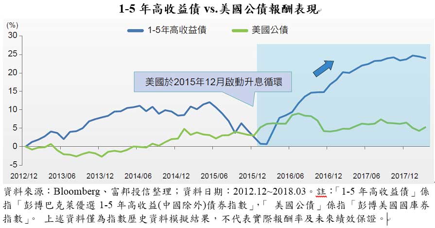 1-5年高收益債vs.美國公債報酬表現