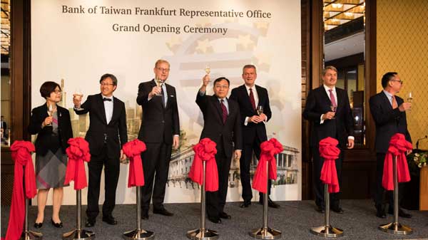 Markus Frank及我國駐德大使謝志偉等貴賓共同剪綵,德國央行及我國金管會倫敦辦事處亦參與盛會,我國駐外單位、台商客戶及國際金融同業力挺支持,並邀請我國旅奧青年音樂家表演弦樂四重奏,現場嘉賓雲集,弦樂悠揚,共同歡慶臺灣銀行前進歐陸布局之里程碑。