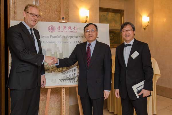 臺灣銀行法蘭克福代表人辦事處於本(5)月23日於德國法蘭克福正式開業,該行董事長呂桔誠親赴德國法蘭克福主持開幕酒會,德國黑森州財政部副部長Dr. Martin Worms、法蘭克福副市長Mr.