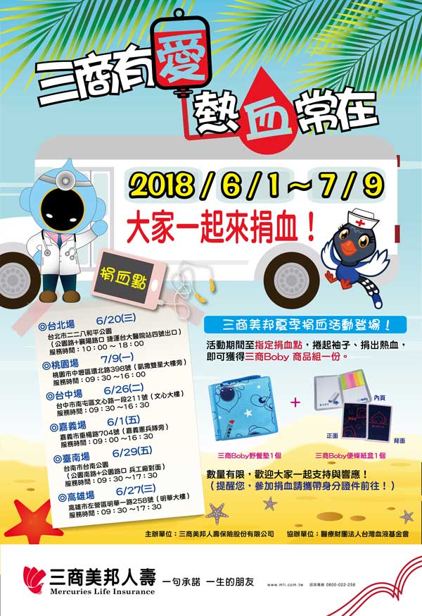 三商美邦人壽:三商有愛 熱血常在 「三商美邦夏季捐血活動」歡迎大家一起來捐血!