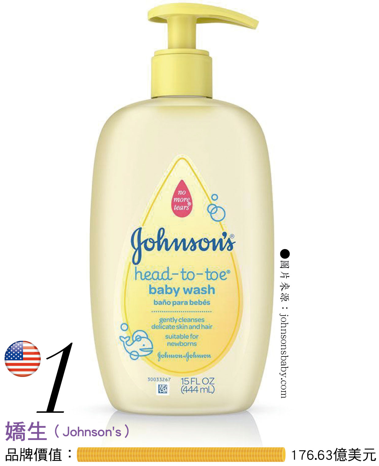 1.嬌生(Johnson's)品牌價值:176.63億美元