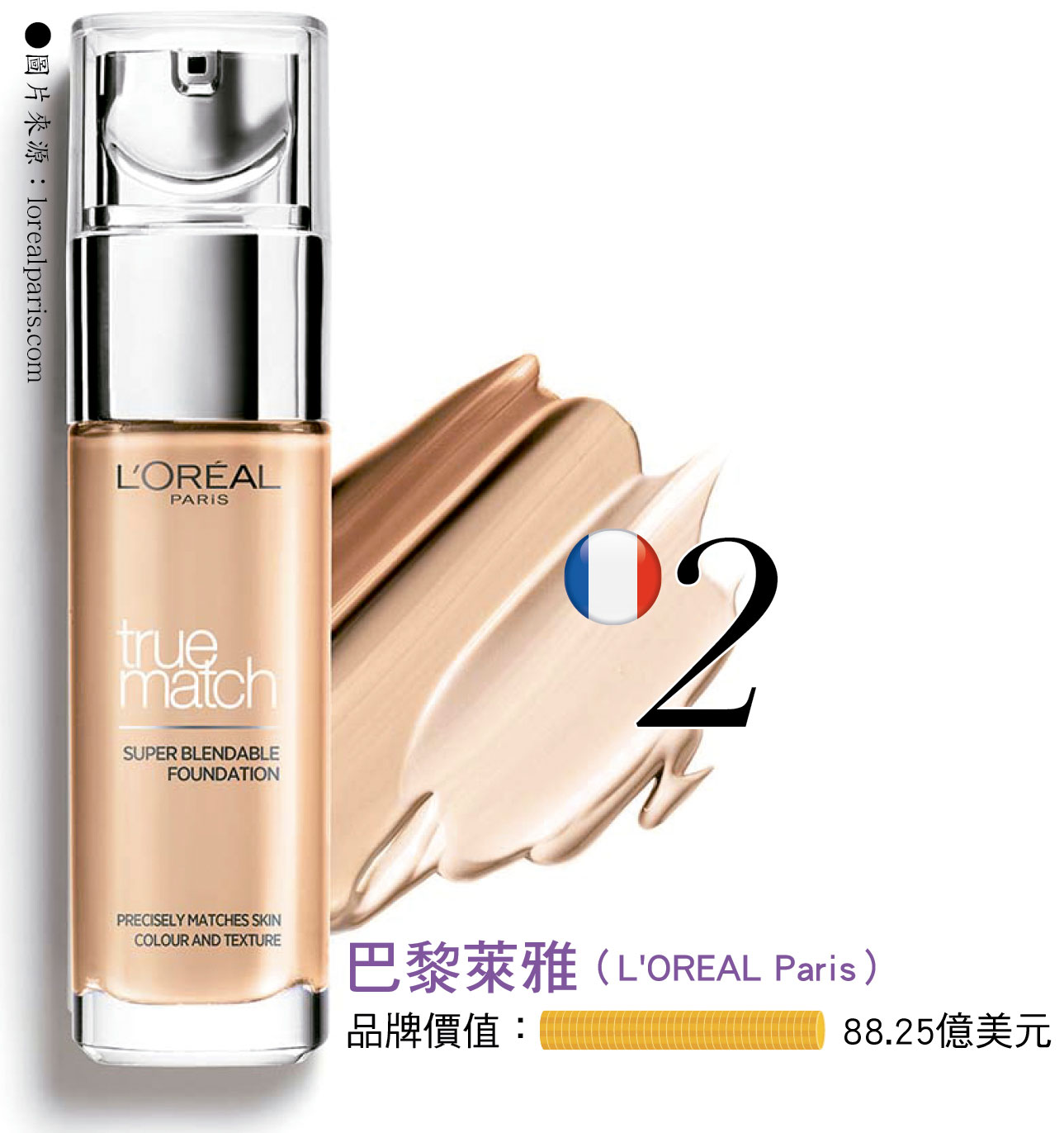 2巴黎萊雅(L'OREAL Paris)品牌價值:88.25億美元