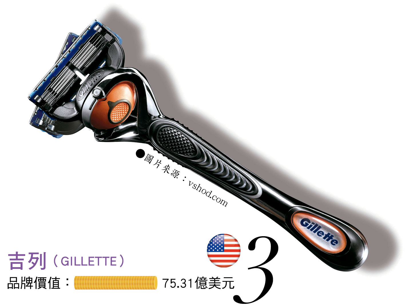 3吉列(GILLETTE)品牌價值:75.31億美元