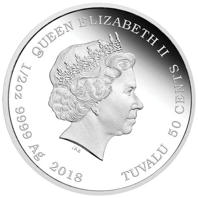 本款銀幣為吐瓦魯政府授權,澳洲柏斯鑄幣局發售,每枚銀幣重量1/2英兩,含銀成色千分之999.9,銀幣正面刻畫英國女王伊莉莎白二世側面肖像、發行年份(2018)、面額(50 CENTS)及國名(TUVALU),全球限量發行5,000枚,臺灣銀行首次獲配300枚。其以精鑄工法鑄造,幣面呈現特有之鏡面光澤,襯托彩色的主題圖案更加細膩迷人,每枚銀幣均附展示盒及保證書,適合個人珍藏及饋贈親友!