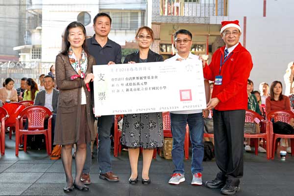 今天上午的歲末聯歡活動當中,育才國小家長會的家長們特別扮成聖誕老人,與湯昶洪校長一起向全校學生發送禮物,鼓勵學生繼續保持響應公益行動的熱情。湯校長說:「育才的學生在響應捐款過程中,看見世界各地的需要,更有社會關懷的種子開始在學生心中萌芽,待他們長大後,就能更多回饋社會。」家長會吳佩珊會長則分享,她的兩個孩子從第一年由家長協助捐款,到今年是孩子們自己主動捐出零用錢,「我和先生也趁此機會,與孩子分享長期參與資助兒童計畫的感動,教導他們珍惜所有,並以行動關懷有需要的人。」