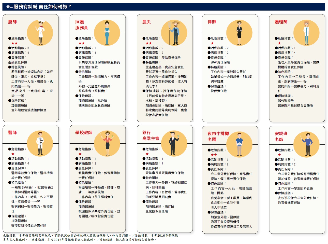 除了高風險的職業需要保險外,專業服務也有專屬保障。
