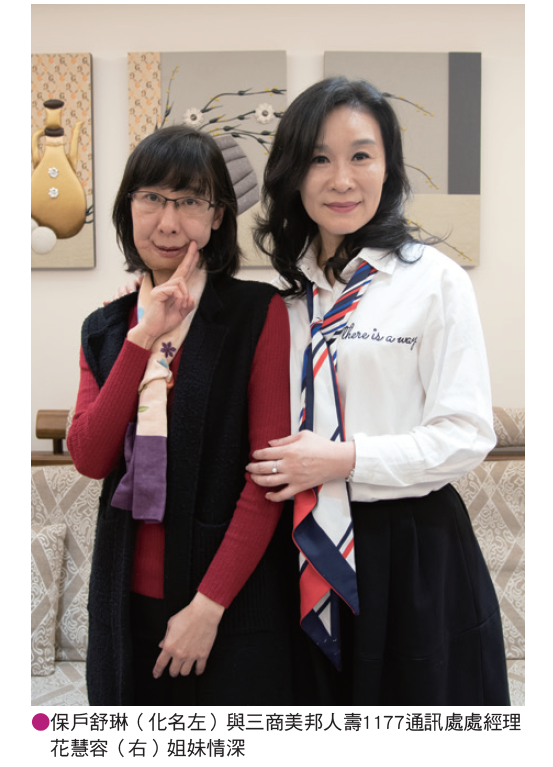 她的姊姊就是三商美邦人壽一一七七通訊處處經理花慧容,「雖然賣妹妹保險,但我從來不想事情發生」,花慧容踏入保險業的初衷就兩個,一是若家人生病有錢治療,二是保險業務時間自由,自己可以在身邊照顧家人,這兩點都在妹妹罹患口腔癌後兌現。