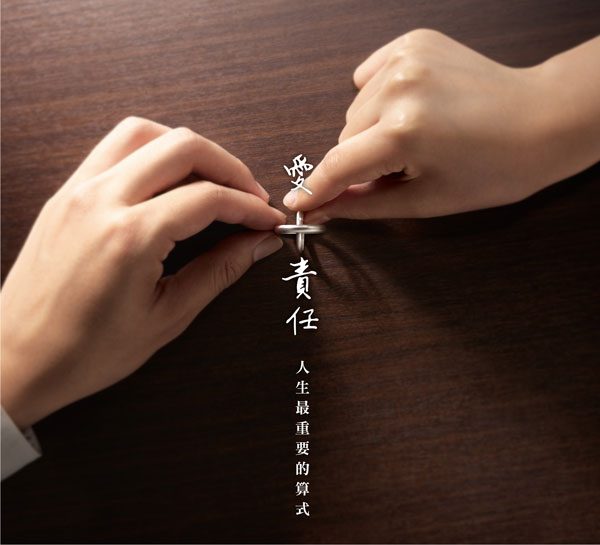 此外,全球人壽也特別推出以「人生最重要的算式=愛+責任」為主軸的社群影片「加減乘除的人生算式」,透過微電影手法拍攝四個社會上動人真實故事,演繹加減乘除的精采人生,分別是85歲快樂嬤「停止凋零的加法人生」、島內移民的孫偉智「有捨才有得的減法人生」、馬祖高中棒球隊教練鄭新勇「相互豐富的乘法人生」、更生人創業家陳興餘「一肩扛起全部的除法人生」,主角們分享自己獨特的人生哲學,喚起社會大眾共鳴,以實際行動付出關懷及陪伴最親愛的家人。同時,也透過《戒指篇》、《腳踏車篇》等平面廣告比喻人生重要階段的愛與責任。