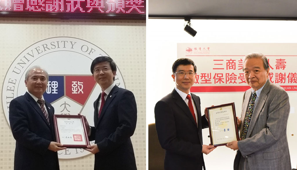 致理科技大學與銘傳大學為表達對三商美邦人壽感謝之意,分別於2月21日與25日舉辦微型保險受贈儀式,由致理科大校長尚世昌博士、銘傳大學校長李銓博士頒贈感謝狀,三商美邦人壽則由副總經理高志強代表領受。