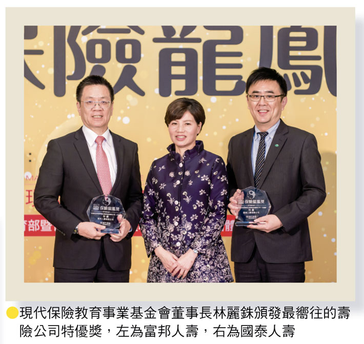 富邦人壽總經理陳俊伴連續多年代表公司受獎,他表示,每年來的感覺都不一樣,雖然年輕人被冠上草莓族,但保險業近年更快速走向年輕化,我們這代就變成「榴槤族」,說話又臭又硬,沒人想聽,「別人都在進步,我們不能原地踏步,」在致力培育新人才的同時,記得自己這一代也要求進步。