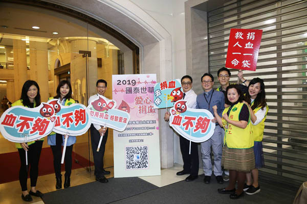 據台灣血液基金會最新統計,目前全台各地除了台南外,台北、新竹、台中等地均為偏低的庫存量(4-7日),台北及新竹甚至有部分血型為不足4日的危險庫存量。國泰世華銀行自2014年起,每年定期在全台舉辦8~10場愛心捐血活動,除鼓勵員工捐血外,更成為推廣捐血小義工,廣邀各界一同挽起衣袖,一起幫助社會籌備充足血源,讓需要患者得以及時輸血救援,共同努力讓台灣醫療用血環境更穩定,幫助更多寶貴生命。