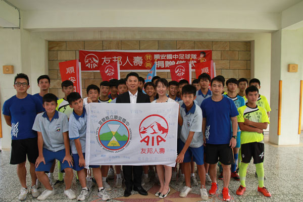 為推廣國內足球運動風氣,協助培育優秀足球運動選手,並落實「健康長久好生活」的品牌精神,AIA友邦人壽透過教育部體育署的「體育運動贊助資料庫媒合平臺」的媒合,贊助宜蘭順安國中足球隊。協助該校足球隊選手獲得資源以安心接受訓練、累積實戰經驗,此合作案也將以宜蘭順安國中為中心,安排足球教練巡迴到鄰近各國小,以培訓國小學童對足球運動的興趣,進而成為足球種子球員,讓未來足球運動的發展銜接更加順利。
