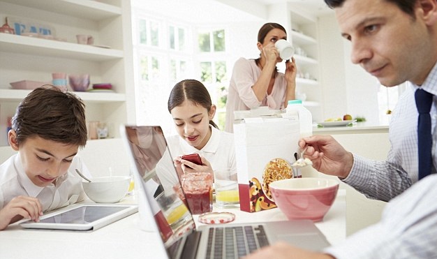 國內一家壽險公司與董氏基金會合作推動養成孩子「樂食、樂動、樂活」的生活習慣,並進行國小學童家長健康概念及生活習慣調查。調查顯示,3C產品啃蝕家人相處時光,出現「家人同桌吃飯,卻忙著低頭玩手機」的現象。