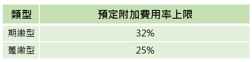 為避免壽險業者將預定附加費用率訂得過高,造成業務競爭,金管會全面統一房貸保險預定附加費用率上限標準,期繳型房貸保險預定附加費用率不得超過總保費32%,躉繳型房貸壽險預定附加費用率不得超過總保費25%,官員表示,目前市場上的預定附加費用率普遍高於此標準,明年7月之後將全面調低,詳見表二。