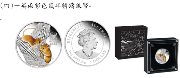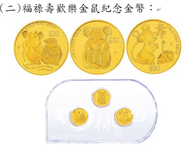 本批引進之鼠年紀念金銀幣共包含以下4款: