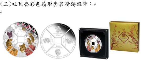 (三)吐瓦魯彩色扇形套裝精鑄銀幣: