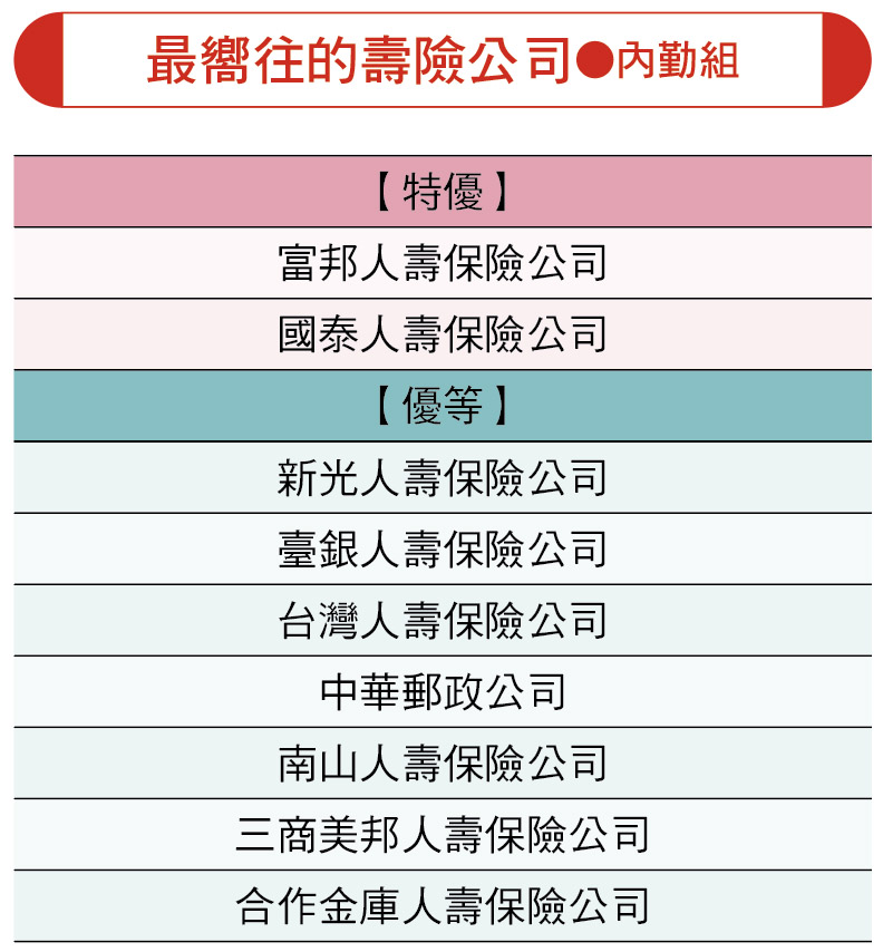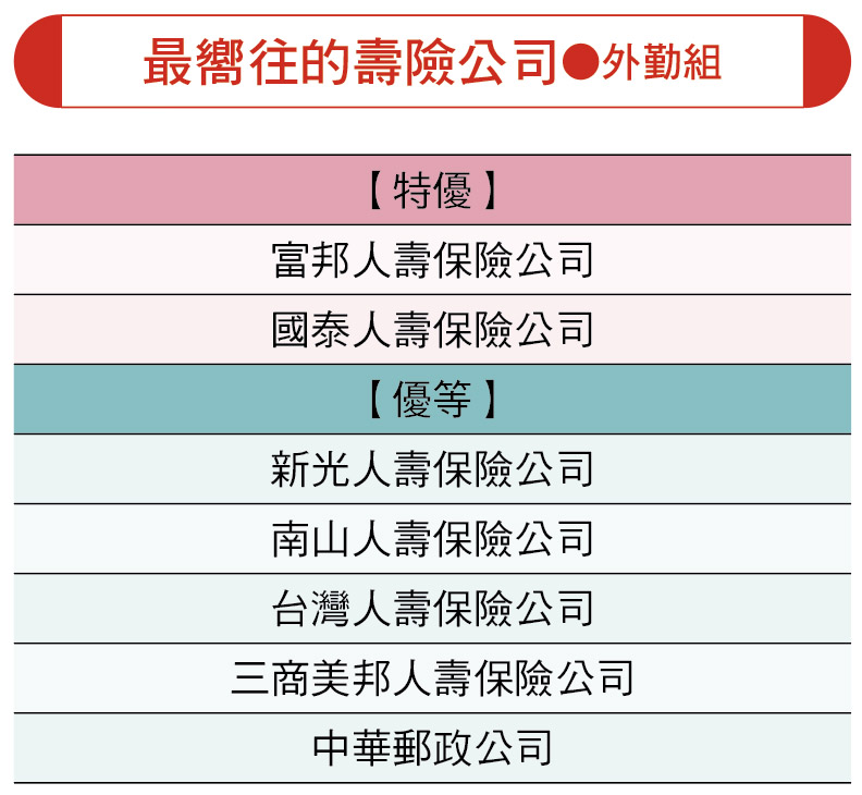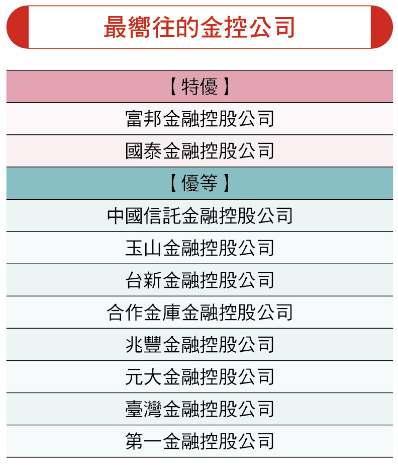 本項調查內容除就業意願外,還包括畢業生票選最想進入的金控、產險公司、壽險公司(分為內勤工作與外勤工作)。