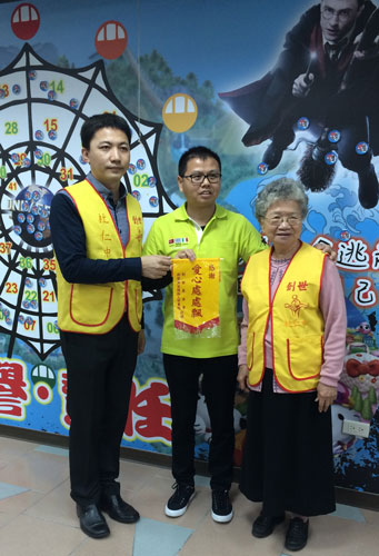身為三商美邦人壽處經理的龍文平,時常鼓勵同仁存好心、做好事,並且固定邀請創世基金會、熱愛生命文教基金會赴辦公室募款,同仁反應踴躍,慷慨解囊,共同幫助社會中弱勢的朋友們。去年他帶著夥伴們赴創世基金會台南分院進行院友服務,同仁們有的唱歌、有的讀報、也有的陪伴院友聊天,帶給院友不一樣的一天。他也分享有很多院友年紀相當年輕,卻因為車禍導致終身行動不便,對於無常的風險有更深的感受,也因此他更加珍惜現在所擁有的,趁自己還能走動時,做志工服務社會。