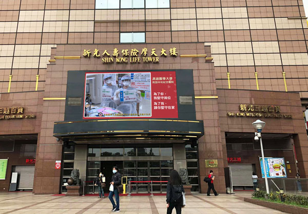 而新光醫院、高醫大附設醫院、童綜合醫院、台北市立聯合醫院中興院區的醫護人員們,更提醒社會大眾勤洗手、盡量留在家裡,一起平安健康度過疫情的考驗。在一片溫馨中也有令人會心一笑的留言,例如有因支援疫情無法陪伴情人的民眾,知道女友每天上班會經過台北車站,把電視牆當求婚廣告,感謝對方支持同時希望在風雨過後可以抱得美人歸;有民眾特別感謝在自我居家管理期間送餐點的外送人員,讓他不至於餓肚子;也有人感謝守護台灣的你我,盼能攜手將傷害降到最低。