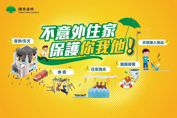 國泰產險資深副總許嘉元表示,以國泰產險獨家商品「住家保戶傘」為例,主要承保受損機會較高的裝潢和動產,無論是火災、天災或常見意外事故所致的損害皆在理賠範圍。而個人動產方面往往需隨身攜帶,不受到空間限制,可以擴大承保到工作場所、其他租賃或暫時搬遷的地點。至於國內騎乘機車人數眾多,這張保單更進一步將住家50公尺內的自有機車遭意外焚燬也納入保障範圍。另外,民眾如擔心住家發生意外事故波及鄰居,或是平常在外活動不小心造成他人傷亡或財物損失而延伸的賠償責任,例如寵物咬傷鄰居、家中看護外出不小心撞壞他人物品等,都屬於住家保戶傘的賠付範圍。