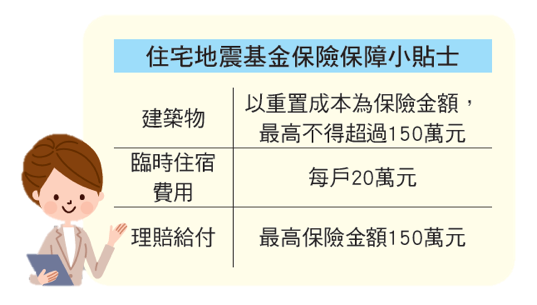 值得一提的是,國人若覺得基本保障尚不足夠,若想再加強,還可選擇加保超額地震險、擴大地震險及輕損地震險。
