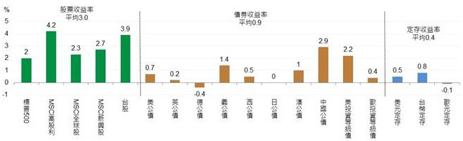 在產業類股方面的「新興科技」與「健康照護」類股,股市的報酬率相對來得高;若以市場指數觀察,特別是美國企業資本投資動作最明顯,且科技股比重高,因此,研判「美股」與「未來科技類股」最具漲勢動能。
