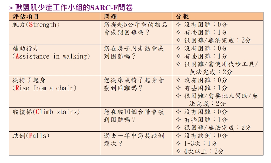 * 歐盟肌少症工作小組的SARC-F問卷,總分達4分以上