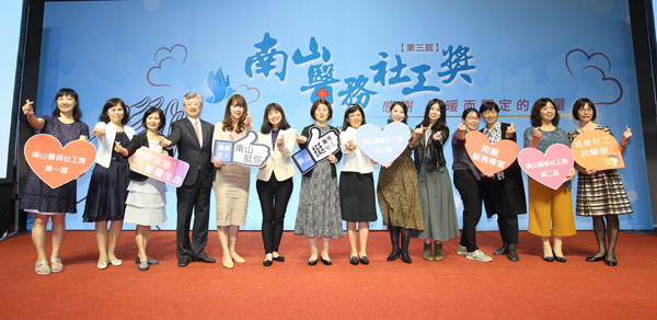 第三屆「南山醫務社工獎」頒獎典禮15日於臺北南山廣場藝文中心舉行,由衛生福利部次長李麗芬、社會救助及社工司楊錦青司長、南山人壽慈善基金會董事暨南山人壽代理總經理范文偉及中華民國醫務社會工作協會理事長溫信學代表頒獎予6家醫院醫務社工團隊和6位醫務社工,肯定得獎者對社會的貢獻;來自花蓮、澎湖、高雄等全國各地的得獎者,在醫院院長、副院長等院方代表率領下共享醫務社工的榮耀,充分彰顯對醫務社工在醫療團隊的重視,更期許藉由「南山醫務社工獎」的舉辦,邀請政府、企業及醫療院所跨產業齊心協力,勉勵在第一線付出的醫務社工夥伴,並呼籲社會對醫務社工的專業及奉獻有更多的關注。