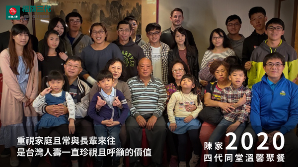 台灣人壽更以台灣知名雙溪百年朱氏家族、福山泰雅部落宗氏家族及四代同堂陳氏三大家族,拍攝「我的大家族故事」三支故事影片,傳達這三個大家族如何展現無價的家庭支持力量。其中泰雅部落宗氏家族的一家之長Yutus爺爺與其家族,肩負著泰雅文化傳承使命,Yutus爺爺不斷傳遞「我們都是祖靈的孩子,感恩祖靈給我們的一切。」從自己、孩子到孫子三代諄諄教誨;不僅保留傳統服飾及打獵習俗,孫子們也都傳承族語及傳統舞蹈。儘管幾年前家族曾發生火災,所幸家人們平安無事,更讓彼此懂得愛要及時。知足、感恩、活力這樣的信念,隨著Yutus爺爺世世相傳,成為家族強大的支持力量,相當感人。