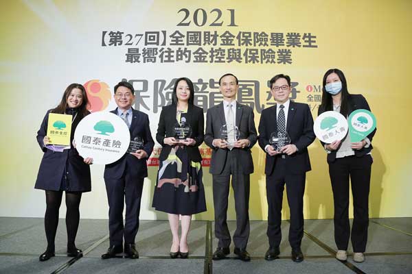 每年三月起是畢業生求職旺季,對全國財金系所學子來說,國泰金控及其子公司是最嚮往的首選公司。由《現代保險雜誌》、財團法人現代保險教育事務基金會共同舉辦的「保險龍鳳獎」-全國財金保險系所畢業生就業意願調查今年邁入第十屆,國泰金控、國泰人壽及國泰產險已連續十年獲得年輕世代首選,成為最嚮往的金控、壽險與產險公司,展現國泰人才培育的專業形象深植人心。