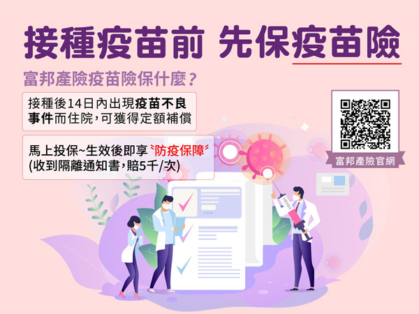 富邦產險:疫苗險網路投保上線 年保費399元享疫苗與防疫雙保障 投保後翌日即可生效 保期接種疫苗劑量、種類無上限