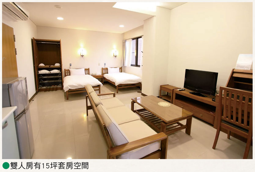 長輩們住的房間絲毫沒有「病房感」,即便說是「濱海旅館」也不為過,不僅有自己的獨立套房,家具採用知名柚木品牌,房內還有陽台可望山眺海,單人套房約8坪大,雙人房則有15坪供夫妻相互照應,且每一間都規劃了獨立的臥室、衛浴、簡易調理台、書桌椅、電視、衣櫃,只要帶一卡皮箱就能入住。