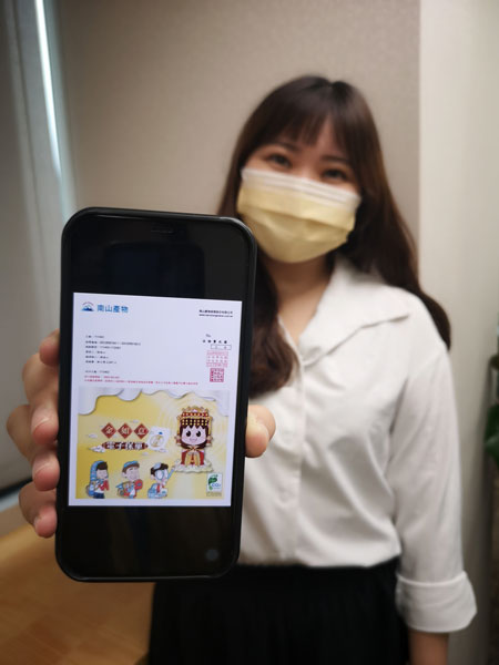 南山產物為持續鼓勵及深化民眾環保意識,並致力於成為「低碳保險先行者」,這次更針對「金如意」專案設計了一款Q版媽祖電子保單。凡於5月31日前向南山業務員投保「金如意」專案並選擇電子保單者,核保完成後就可利用電子郵件或手機簡訊收到期間限定的Q版媽祖電子保單,不僅讓保單傳遞更迅速,無紙化的電子保單也更環保,讓祈福之旅更具意義。